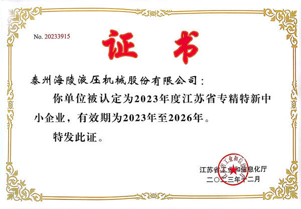 省级专精特新中小企业证书