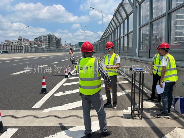 2022年7月1日下午14时许,我司携专业检测团队对镇江丁卯高架路段中我司生产的“S”型抗冲击减噪伸缩装置(路面伸缩缝)进行降噪检测,效果明显,分贝数值远远低于普通的伸缩缝!