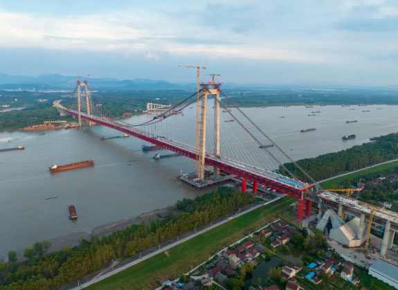 世界首座双层斜拉-悬索协作体系大桥:G3铜陵长江公铁大桥合龙,我司参与项目建设并提供整体架桥设备的液压电控系统!海陵液压,助您成功!