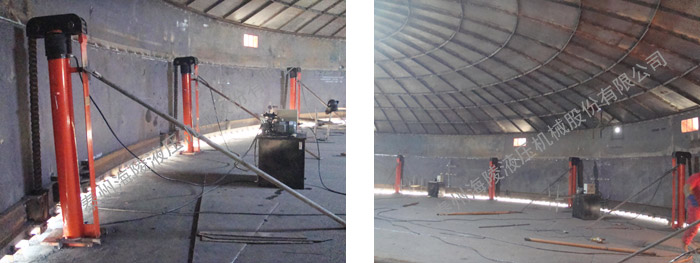 我公司生产制作的成套倒装提升液压设备即储罐安装设备,主要用于协助各种大型储罐、气柜、电厂脱硫塔等钢结构、大型重物的倒装提升焊接安装。