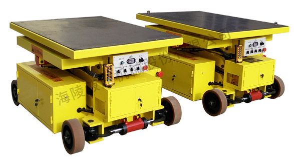 设备组成为液压泵站驱动的升降平台,升降平台上工作台面可实现前应移动及旋转,整个平台可实现纵横向的行走,由电机驱动实现行走功能,可以自由运行,即能够实现纵向、横向。