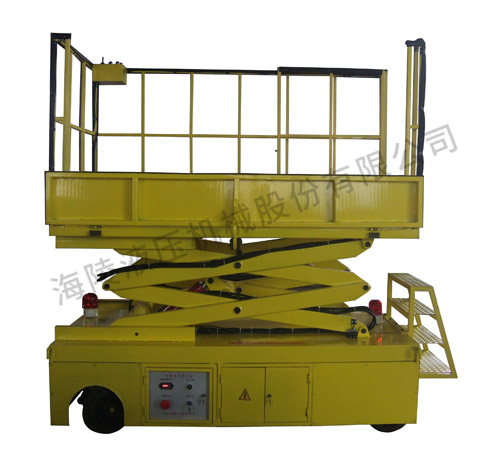 电瓶式液压升降平台:我公司生产的电瓶式液压升降平台被各车辆厂、地铁、城轨公司用于车辆设备的调整、安装、维护和检修。1、电瓶式驱动液压升降平台采用电瓶驱动,结构合理,升降平稳,安全可靠,由机架、结构件、走行系统、升降驱动传动系统、操作控制系统及安全保护系统等部分组成,设备连续工作时具有良好的稳定性,移动时灵活方便。